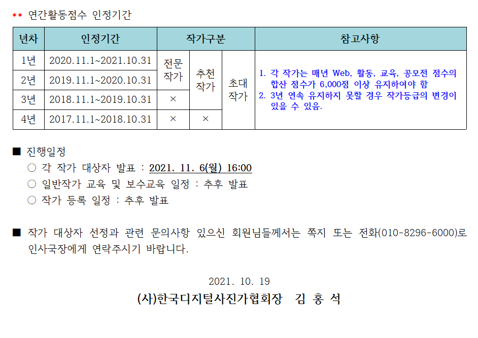 [교육 제2021-002호] 제31기 작가양성교육 및 제28차 작가회원 보수교육 일정공지