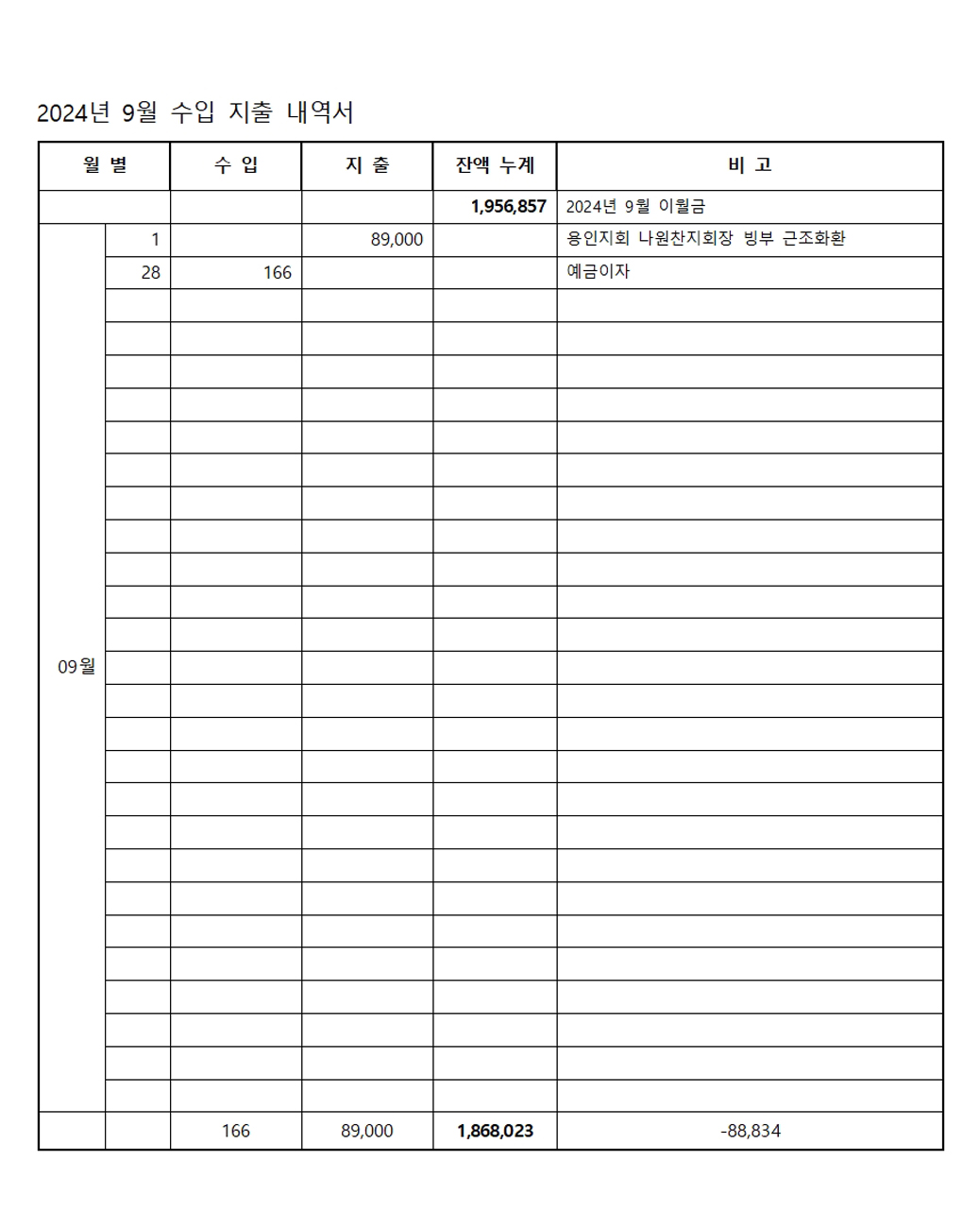 2024년 9월 수입 지출 내역서