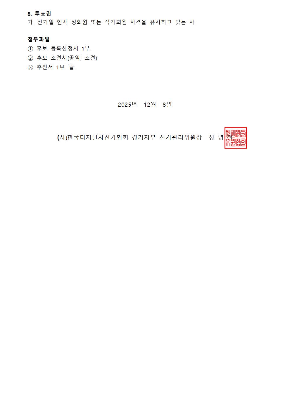 『경기지부』 (사)한국디지털사진가협회 경기지부 선거 공고