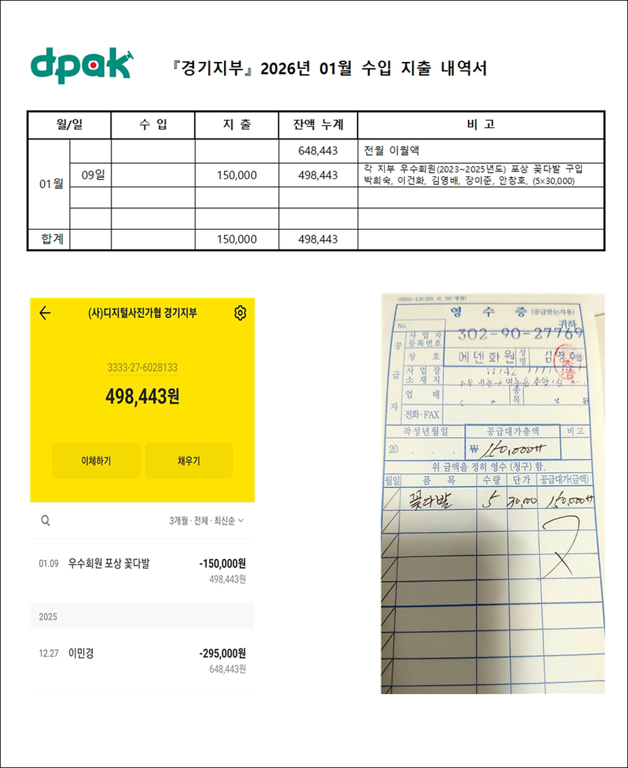 『경기지부』 2026년 01월 수입 지출 내역서