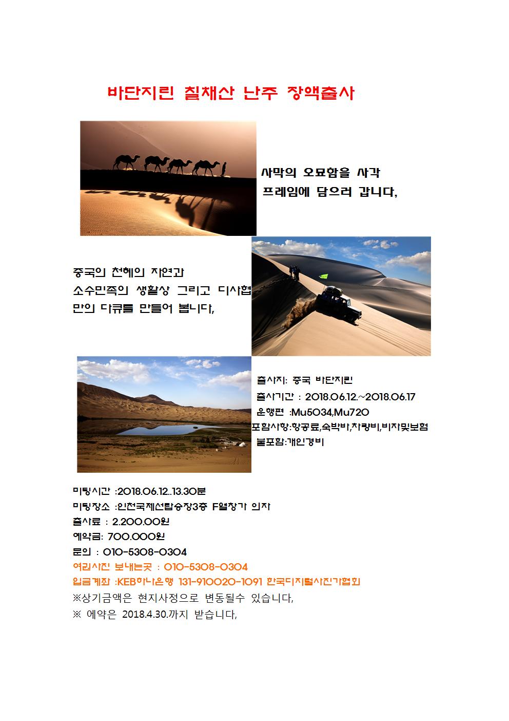 여행관리실에서 바단지린 출사를 갑니다,