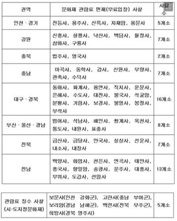 법주사등 65개 사찰 무료입장