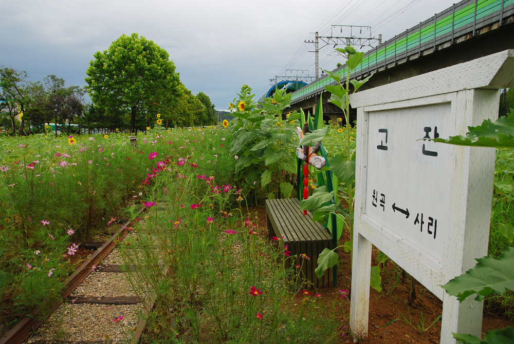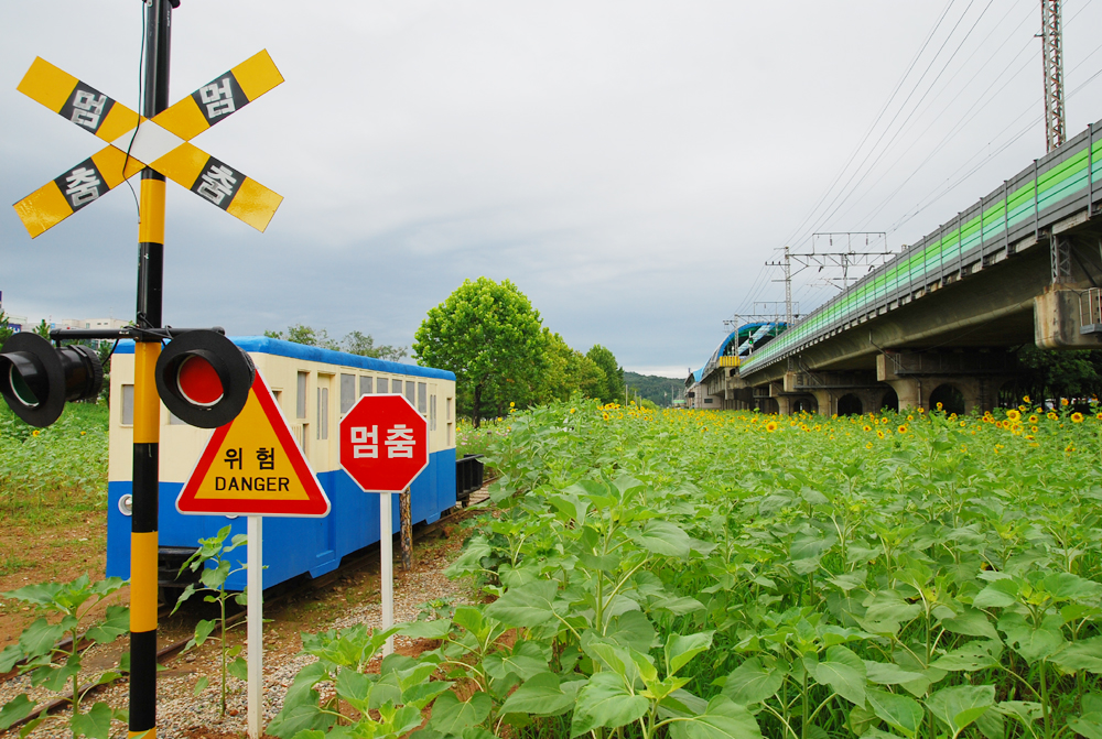 협괘열차 다니던 철로위에 해바라기가 가득합니다.