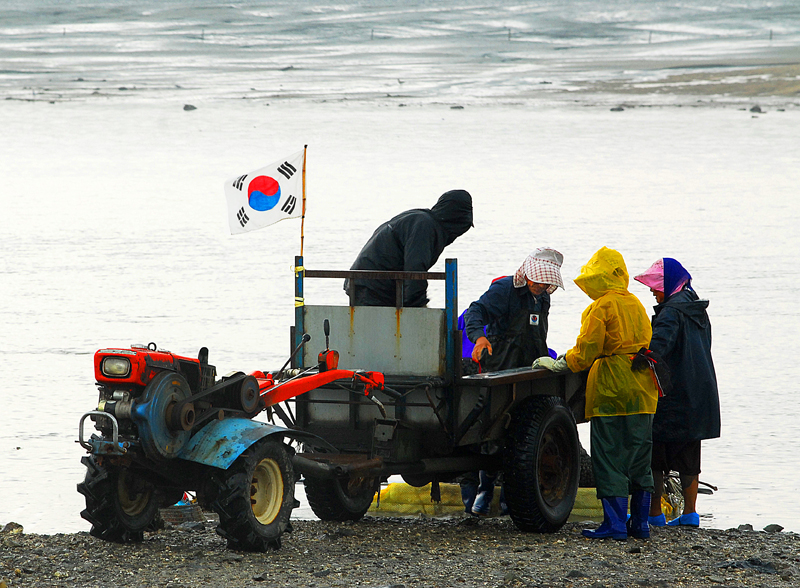 태극기 휘날리며.. 조개잡았다..
