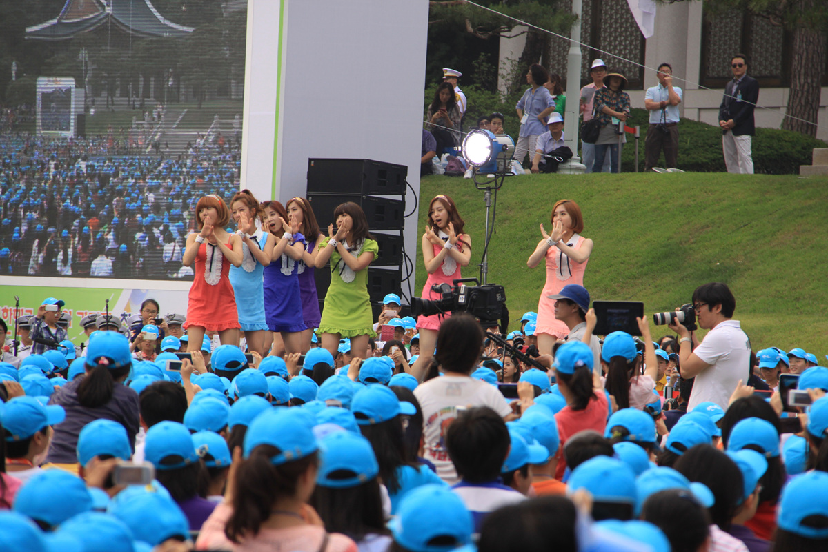 청와대 푸른누리 기자단에게 축하공연을 하는 모습