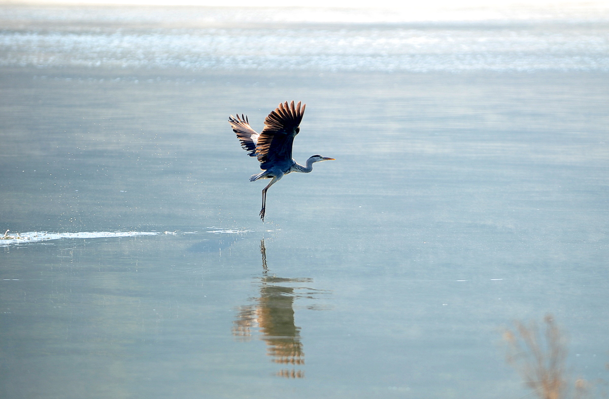 커다란 날개를 퍼덕이며 물위를 총총 뛰다 날아오르다...