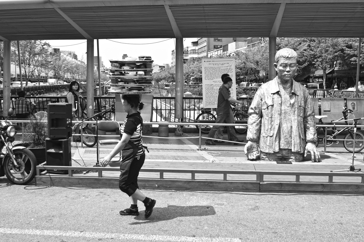 몇 겹의 밥상을 이고 아주머니가 지나 갑니다.