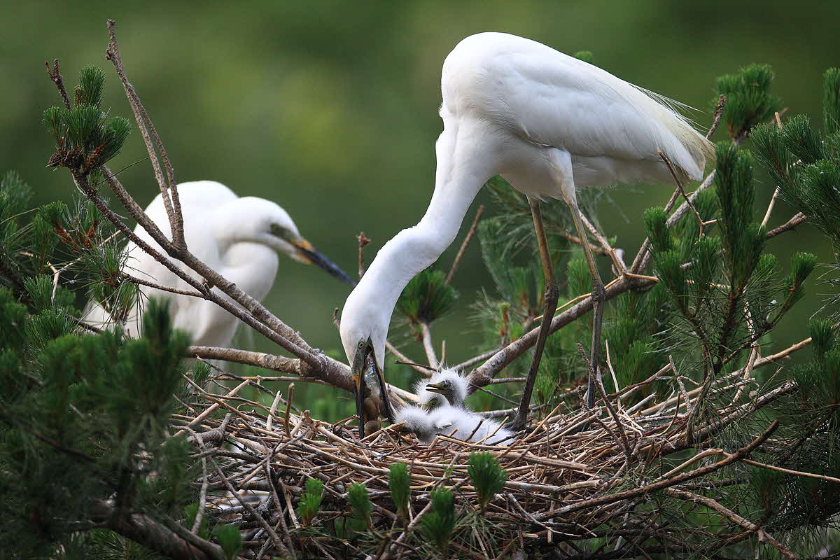 엄마,아빠가 교대로 먹이사냥을나가고 아가들을 돌봅니다