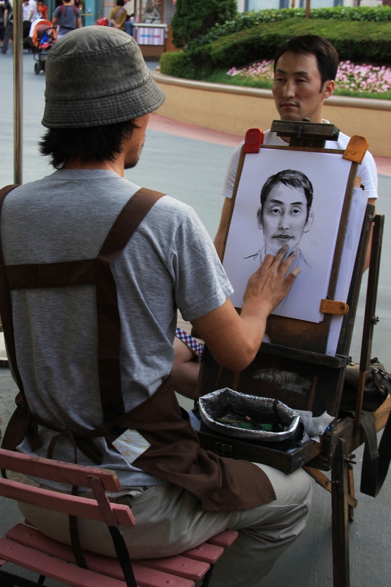 열심히 인물화를 그리는 화가 ...