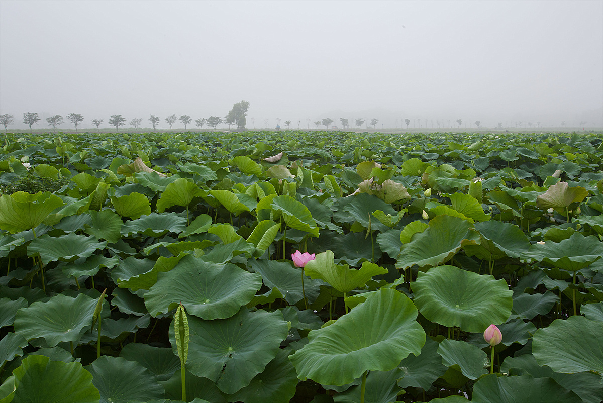 안개자욱한 관곡지에서.