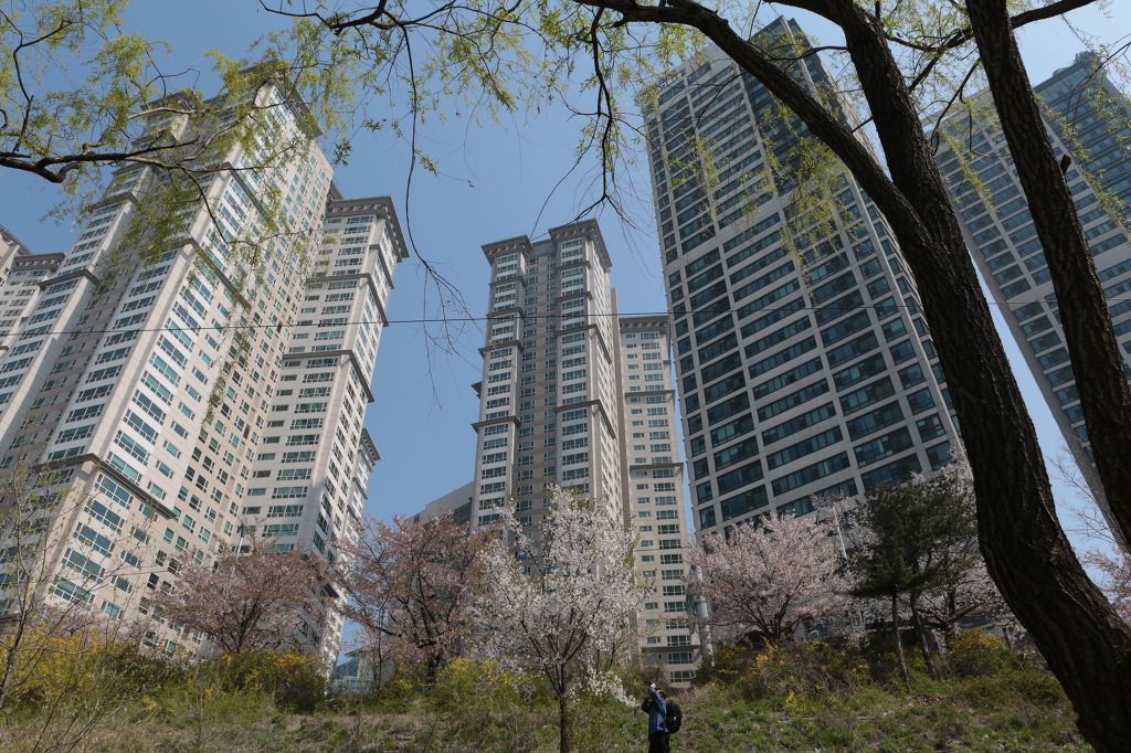 빌딩숲속에 만개한 벗꽃