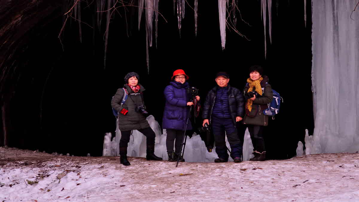 마포지회회원과 함께 눈이 쌓여있는 철원의 역고드름굴을 찾아서 기념촬영.