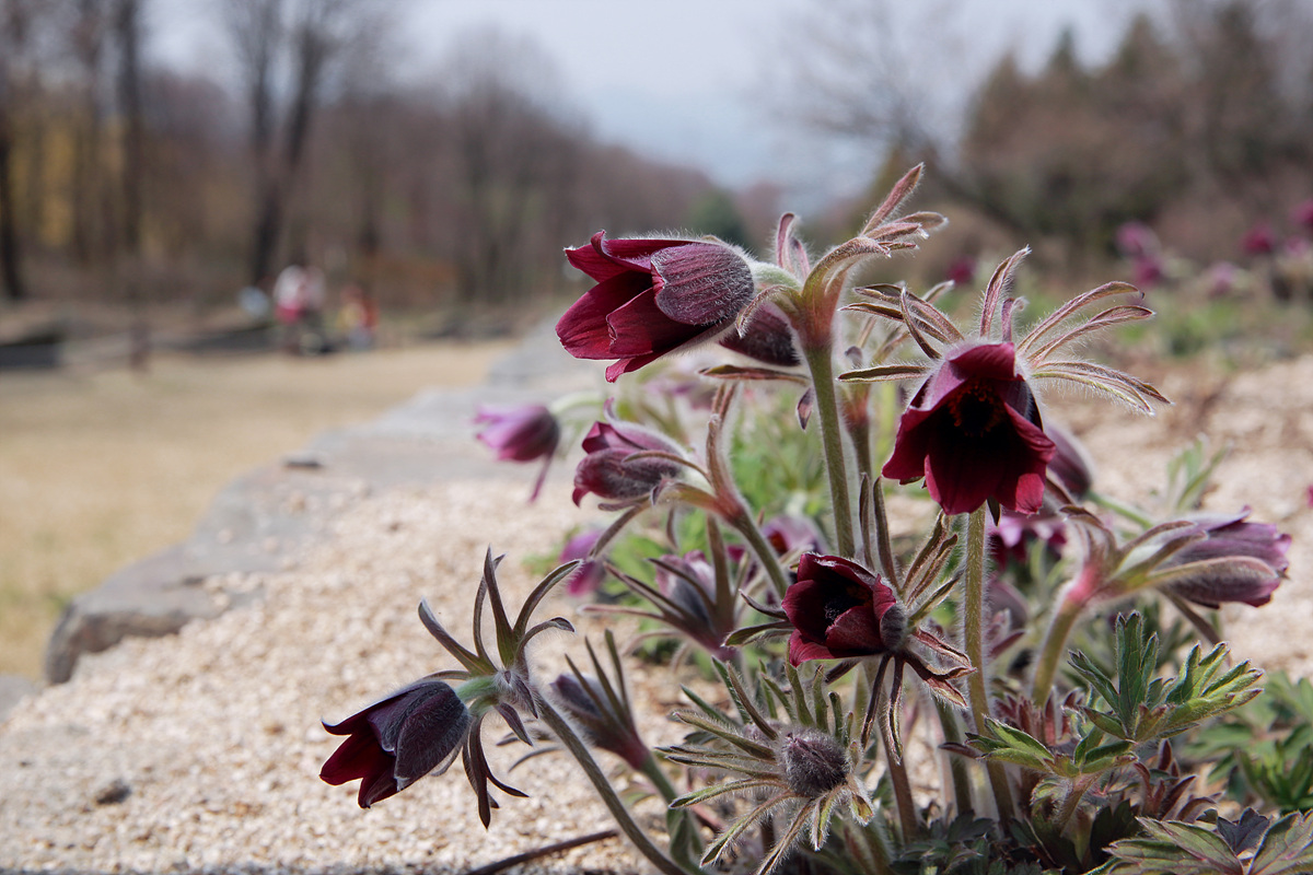 무덤가에 자생하고 동강 등 석회암지대에 자생을 하는 할미꽃이