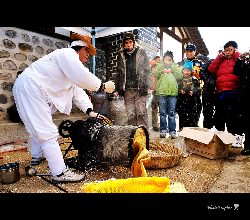 구수한 강냉이 내음이 어린시절의 추억을 기억케 합니다.설날 남산골 한옥마을에서....