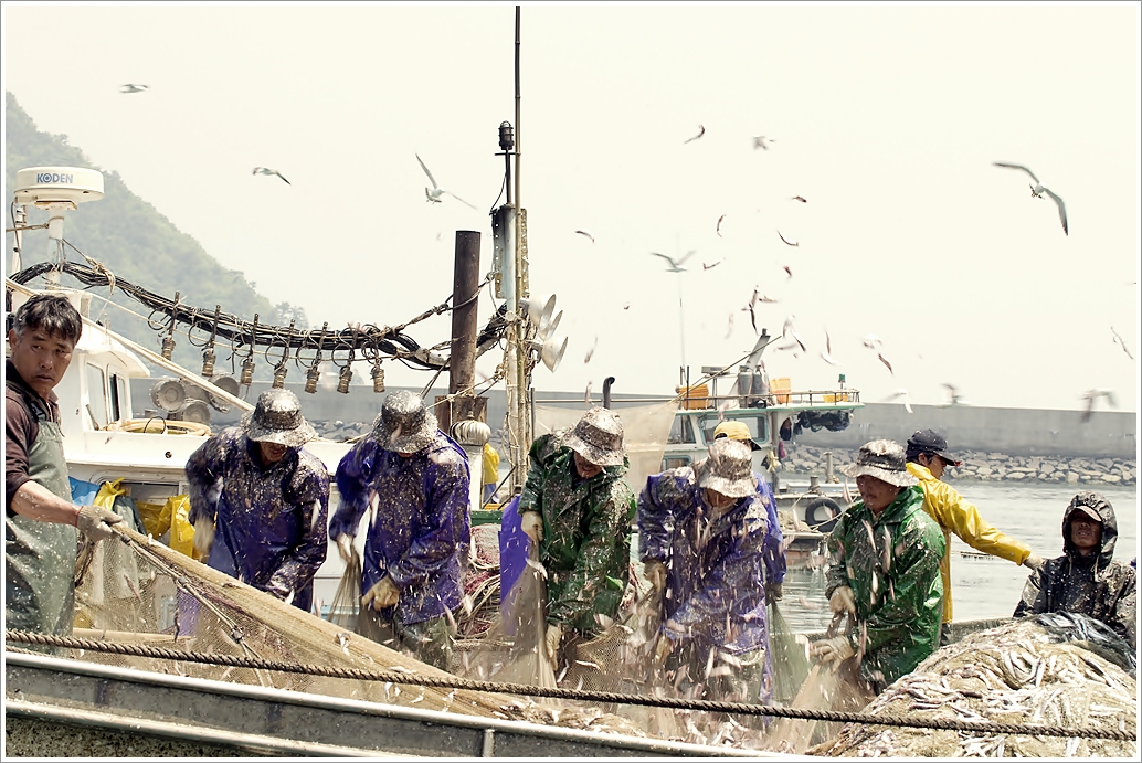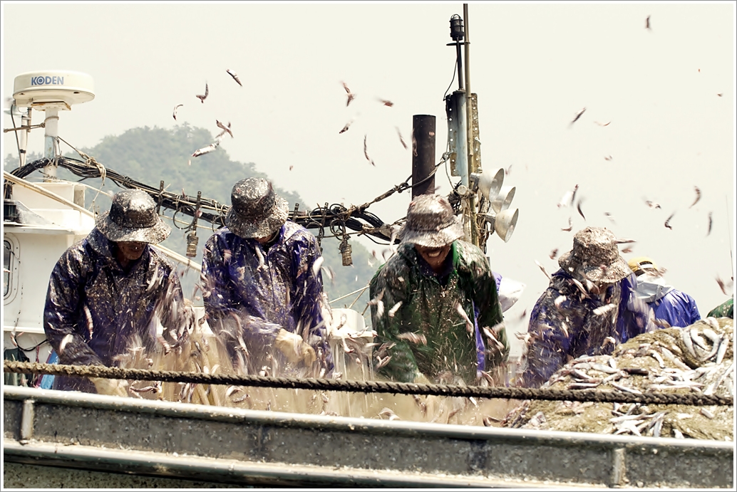 경남 남해 미조항 멸치털이