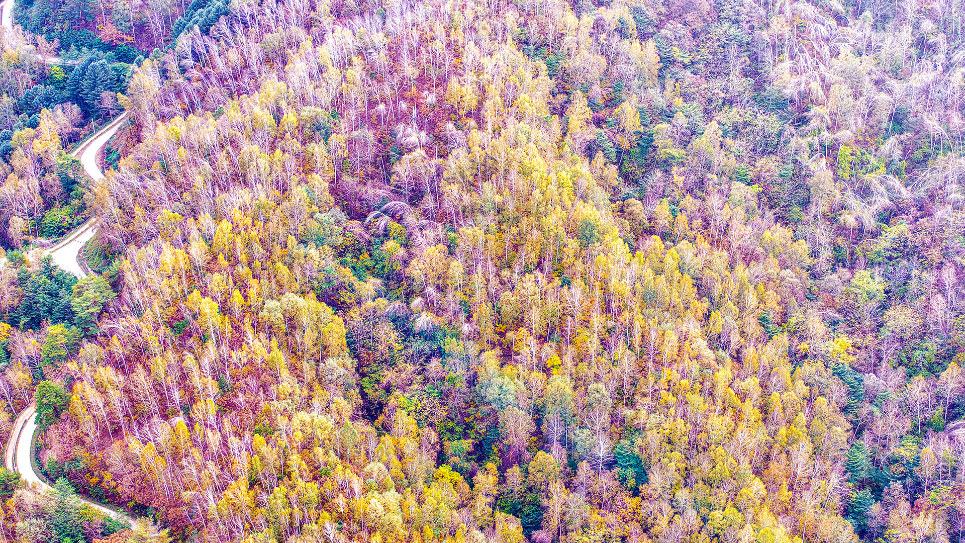 단풍이 물들인 자작나무숲 담었습니다.