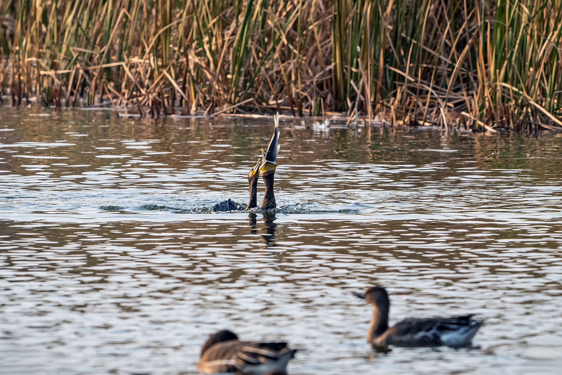 가마우지의 대어 낚시 성공