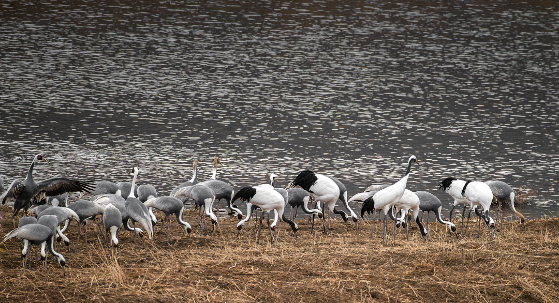 회색빛의 재두루미(White-naped Crane) .