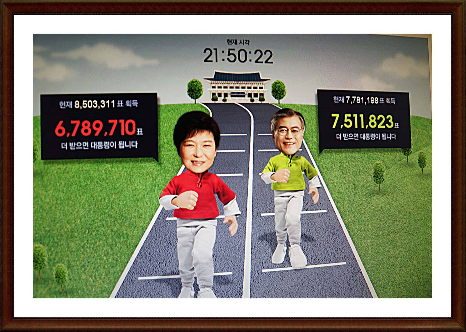 축하 드립니다.유세장의최종 모습과 모 방송사의코믹 개표실황을 담는다