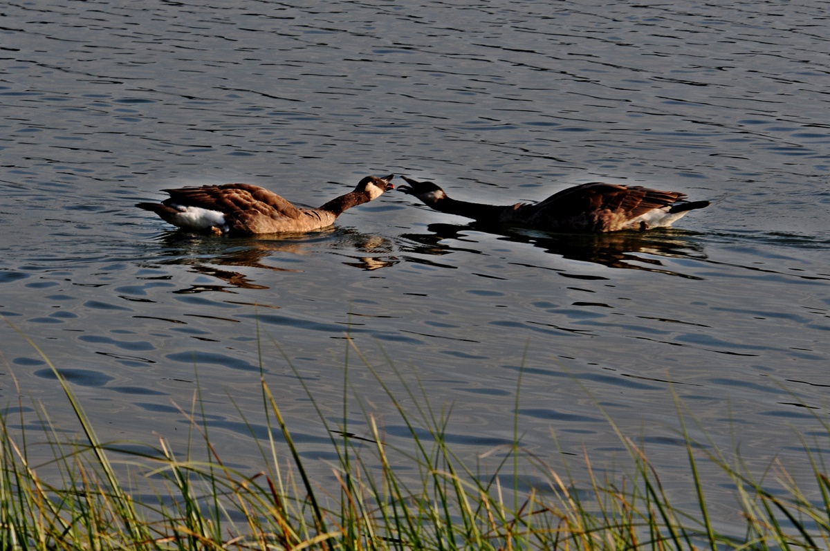 들 오리 둘이서 마주보며 달려드는 자세는--