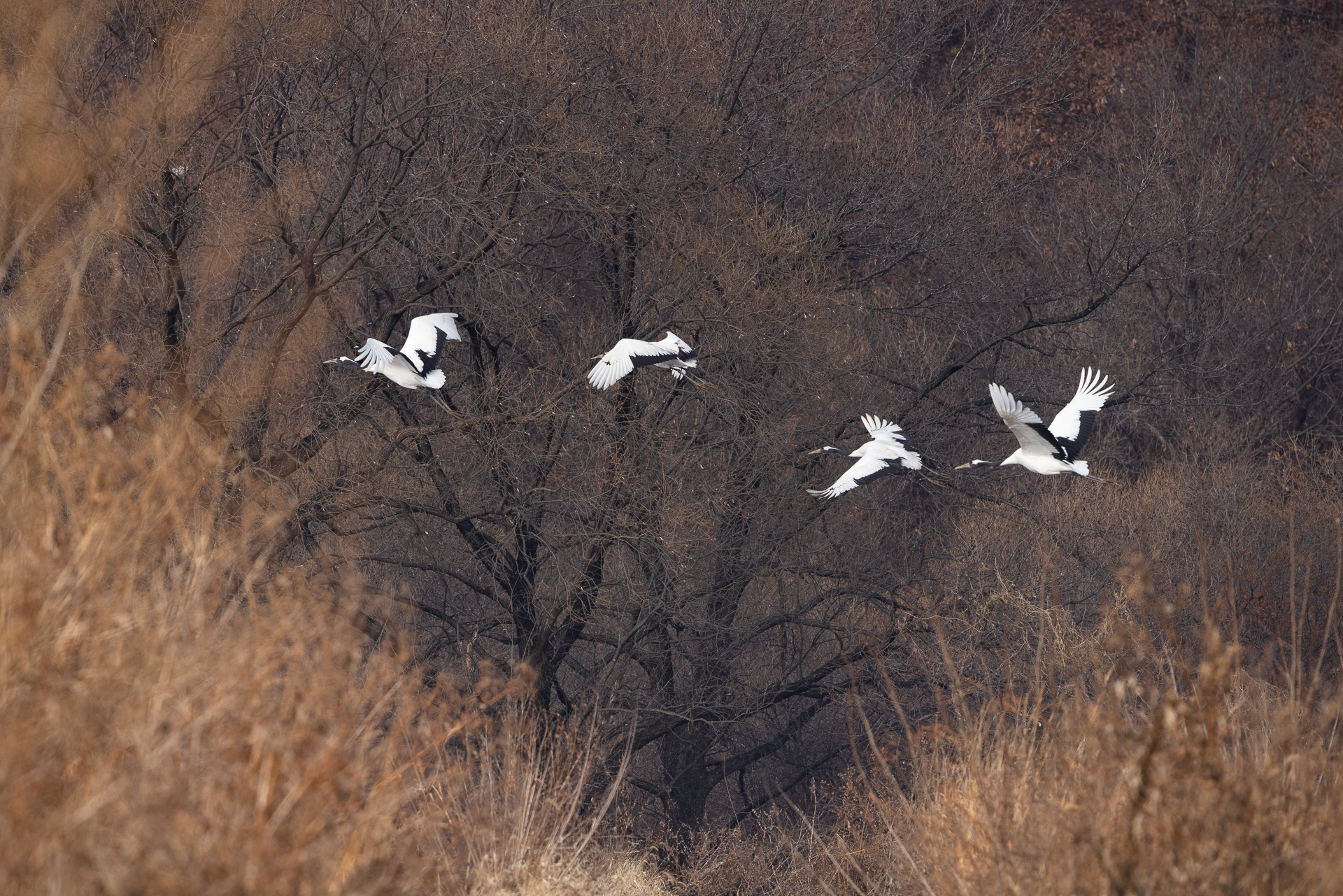 두루미 가족이 힘차게 날개짓을 하며 날아 가네요