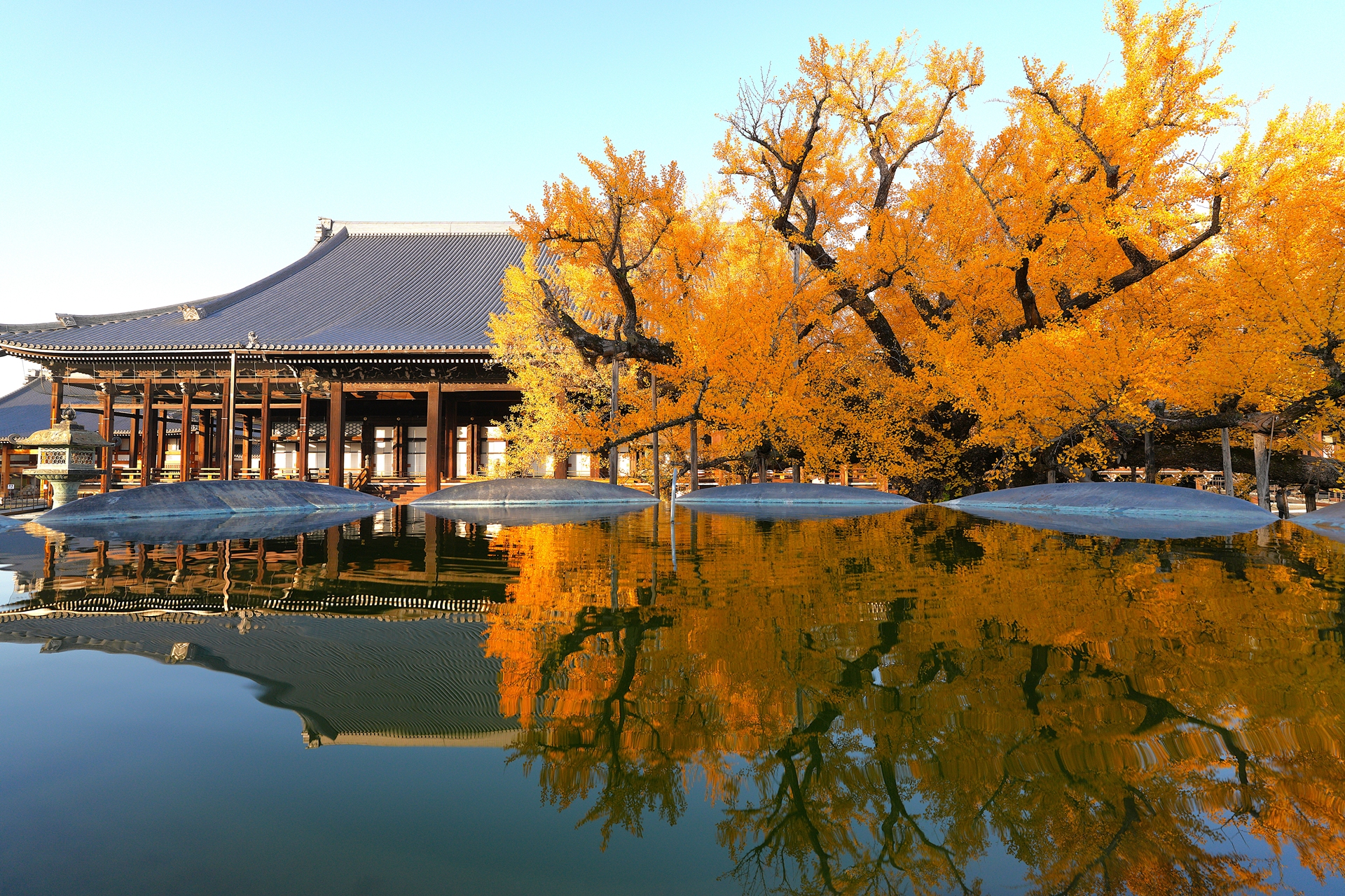 교토에 있는 니시혼간지 사찰 큰 청동 화로
