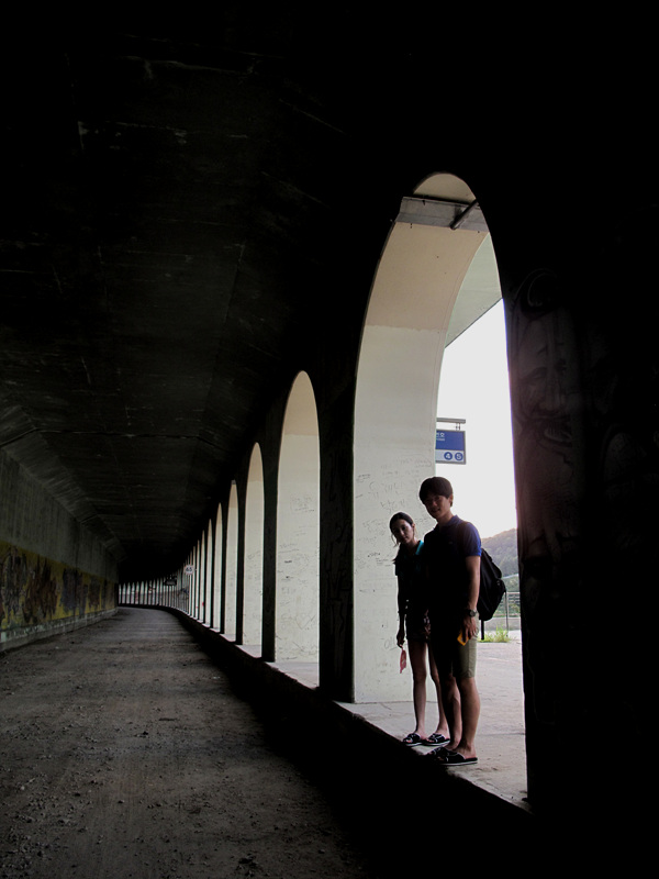 옛 강촌역에서 만난 젊은 커플.