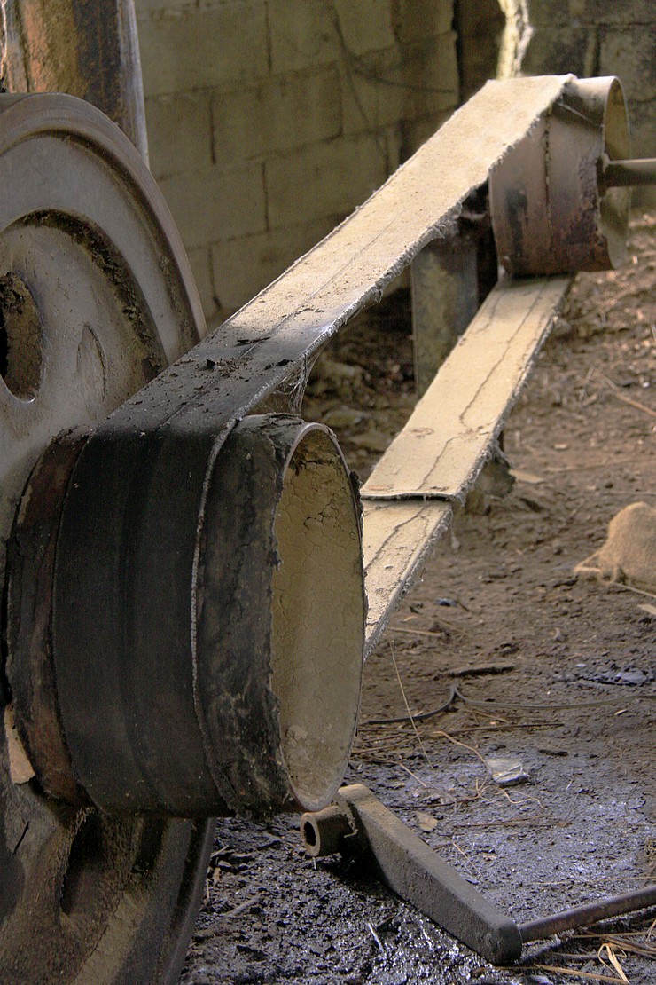 그렇게 굉음을 내고 돌고 돌던 큰 덩치의 야마자끼엔진은 벨트(피대)을 감은채 멈추어져 있었다.