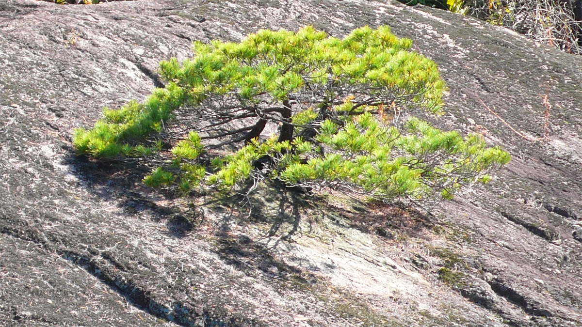 바위위에 끈질기게 살아 있는 소나무