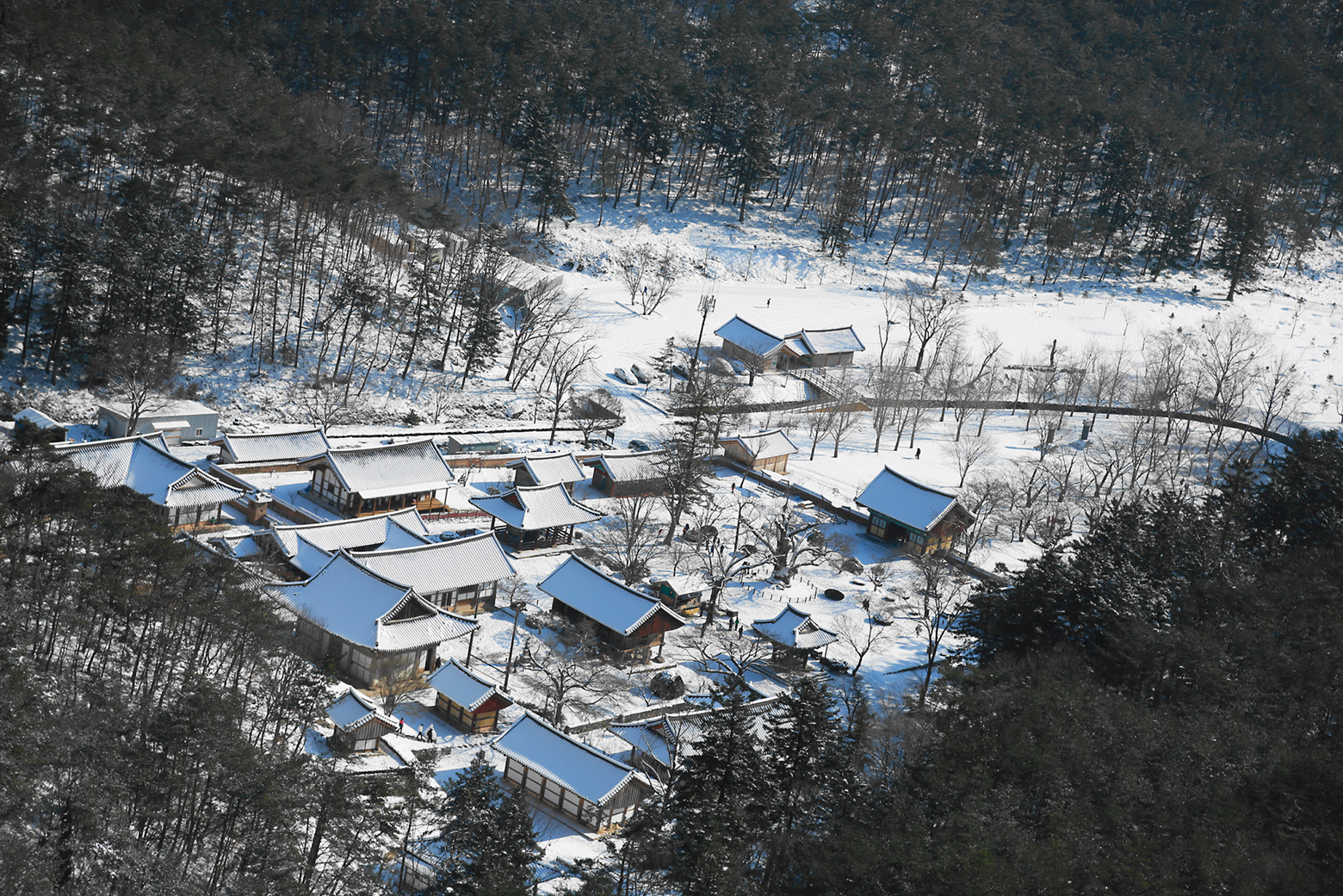 변산에서 본 눈덮힌 내소사...