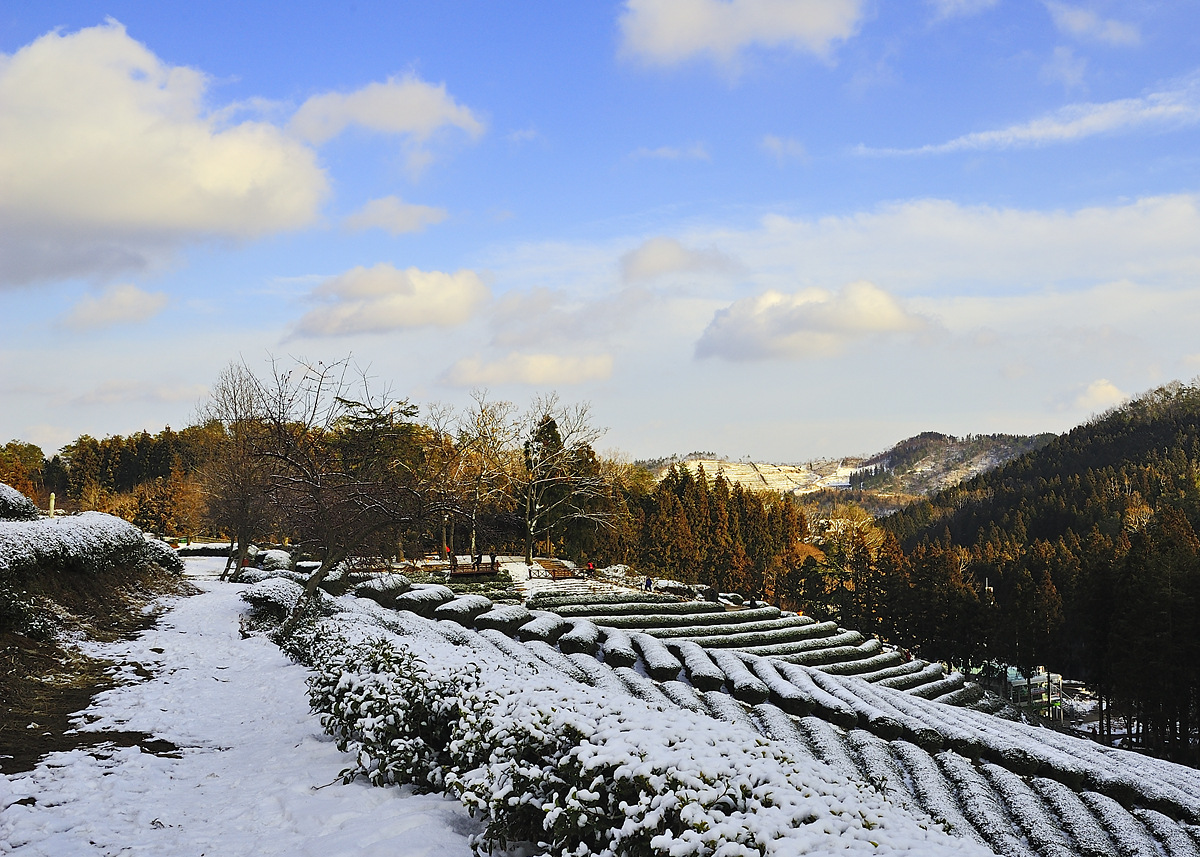 하늘도 맑은 날의 녹차밭은