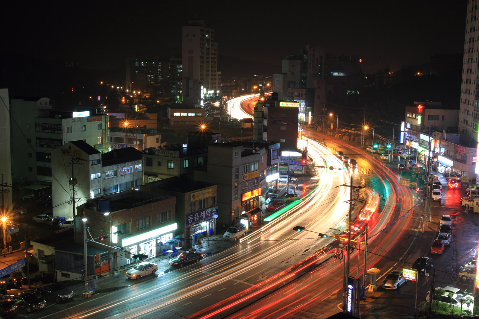집에서 내려다본 비내리는 국도14호선............