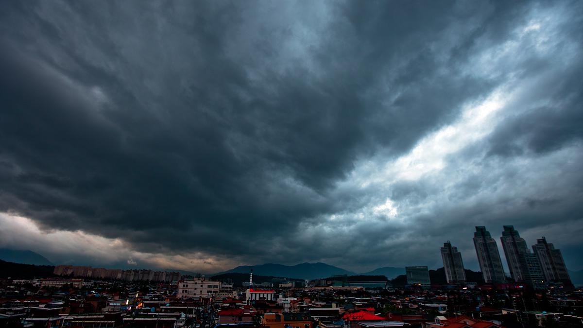 태풍전야의 하늘 과 도심