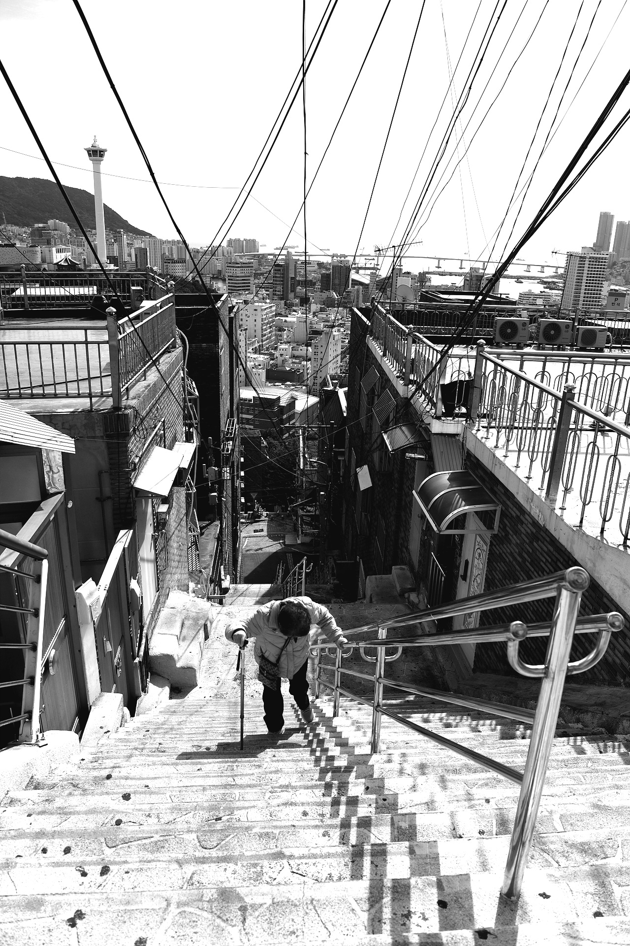 어릴적 없던 길이라 나도 바로 내려 가기가 무서웠다. 그나마 재개발 하면서 바로낸 길이라 하신다.