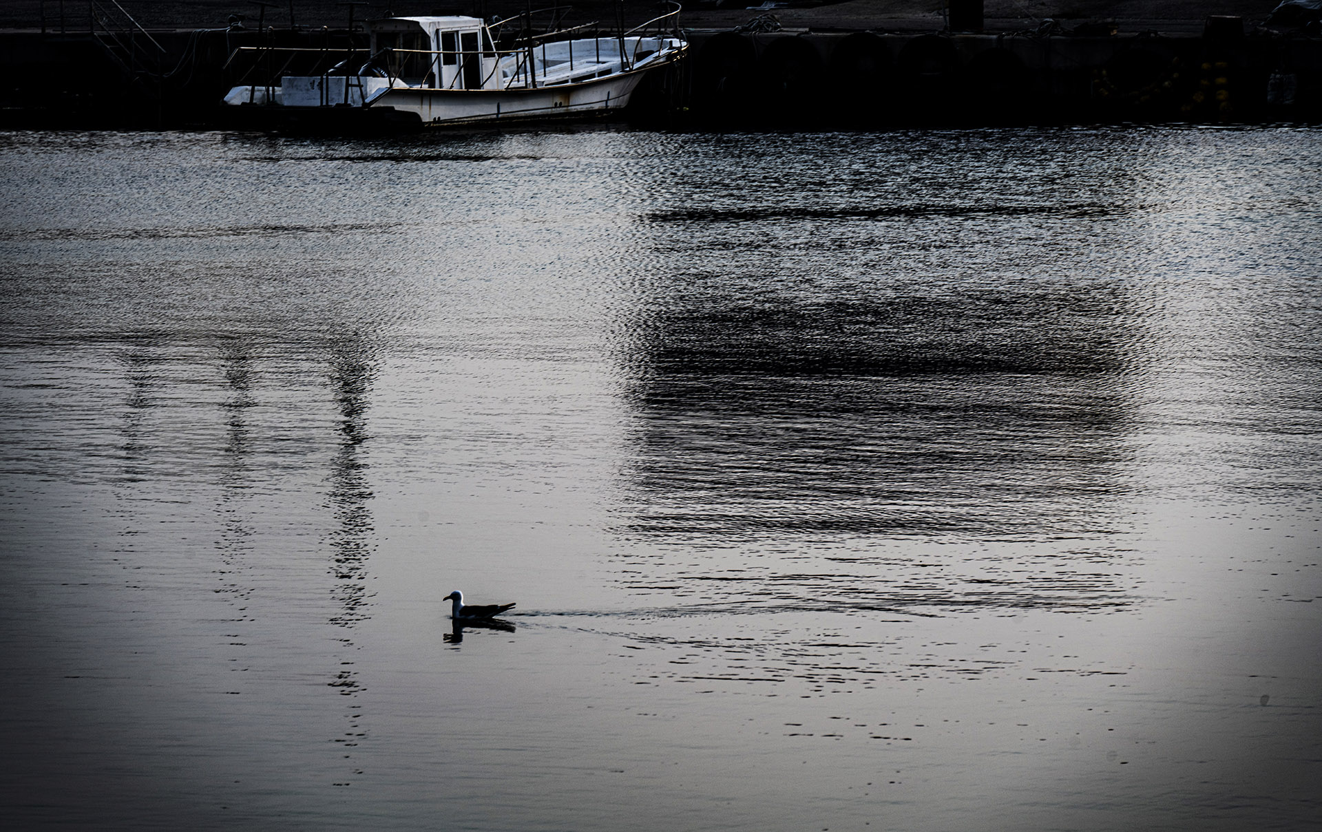 갈매기 한 마리가 유유히 놀고 있는 모습이