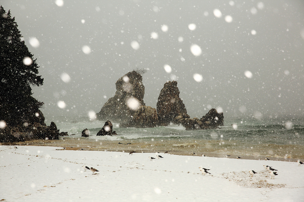 저녁무렵부터 눈이 쏟아지기 시작했다 달려간 추암 파도와 함께 눈보라가 몰아쳤다