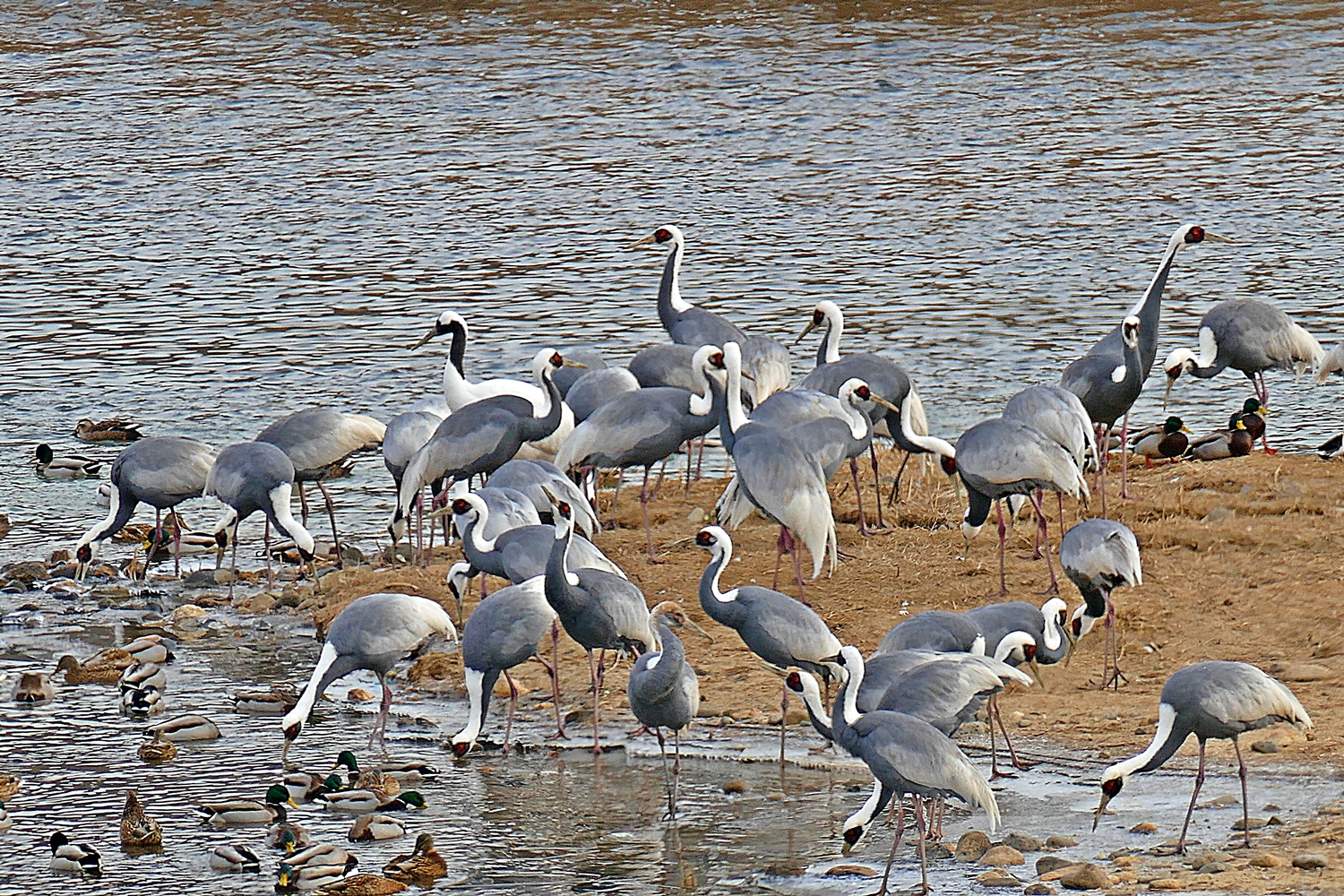 열심히 먹이활동하는 재두루미 가족 ....