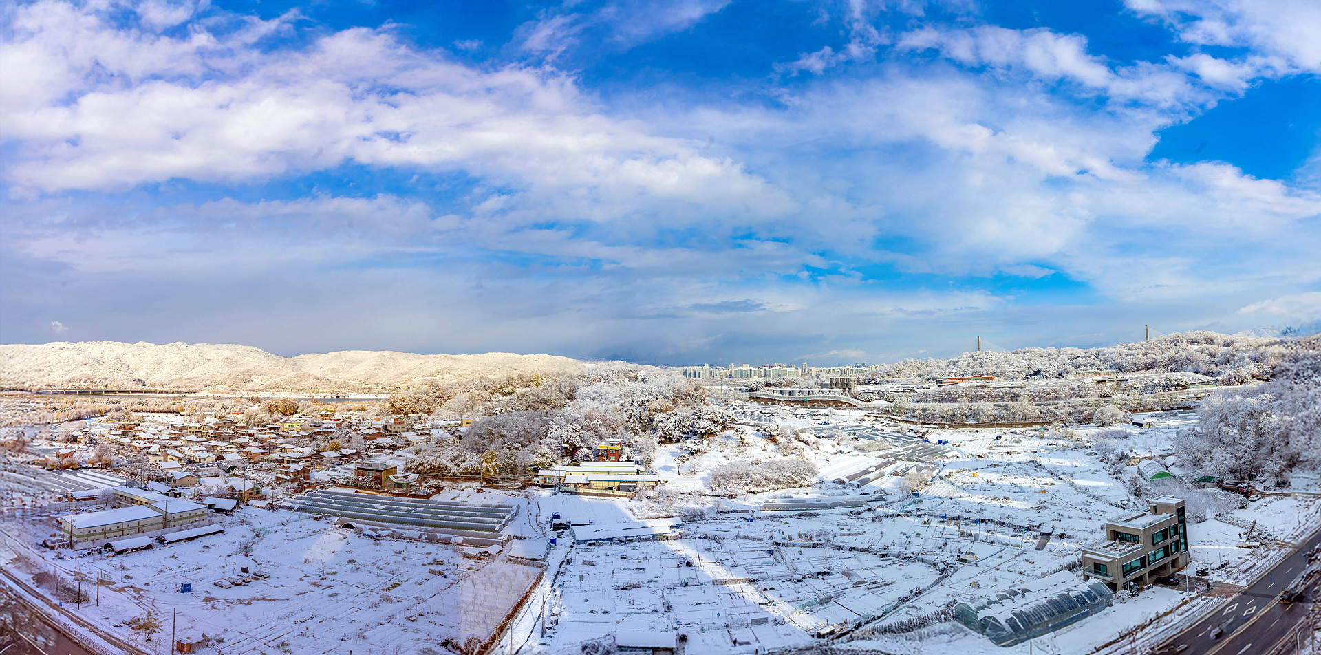 첫눈치곤 꾀나 많이 왔고 오고있다 잠시 하늘이 열린틈을타서 한컷 해본다