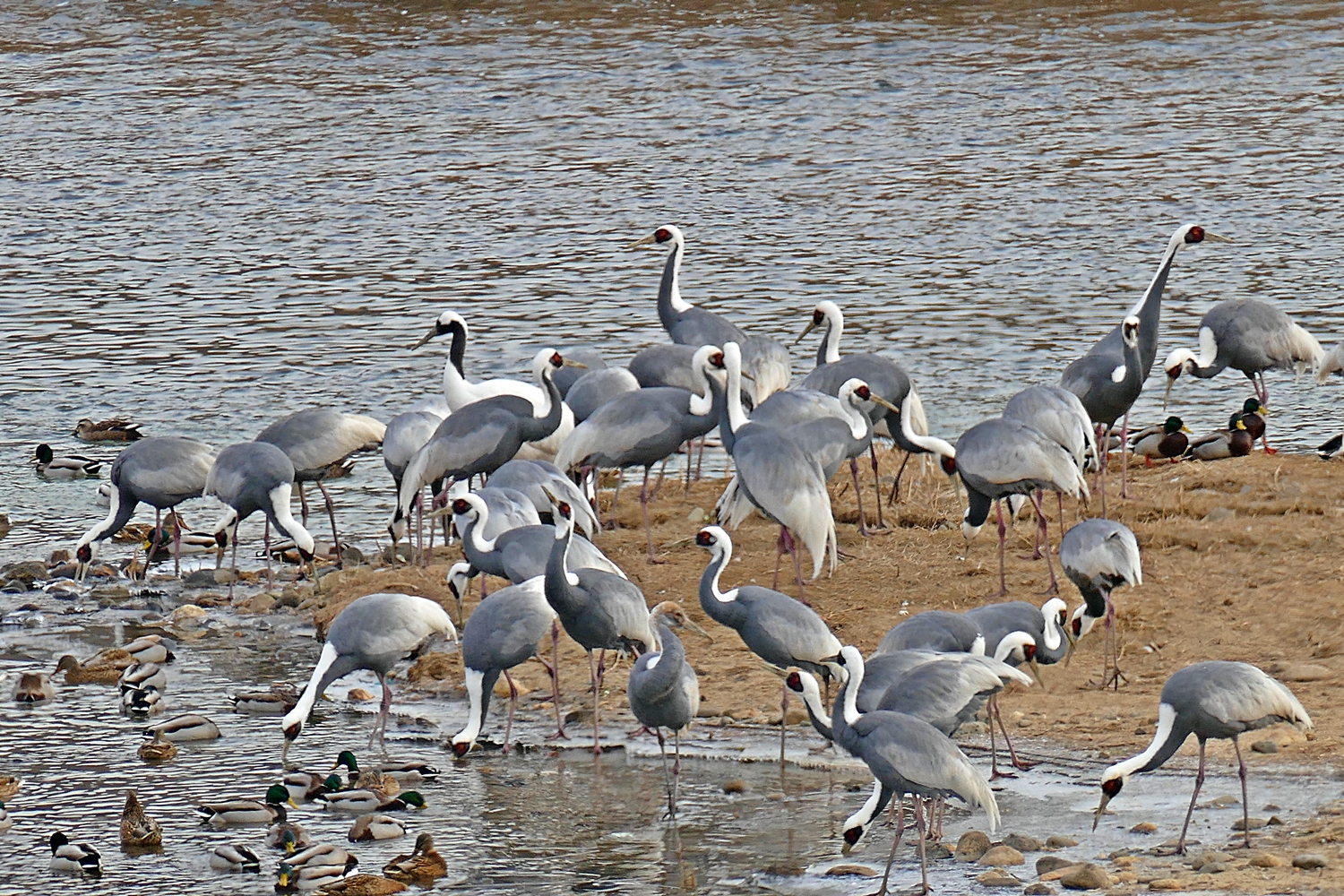 겨울철새 재두루미 가족 먹이활동중...