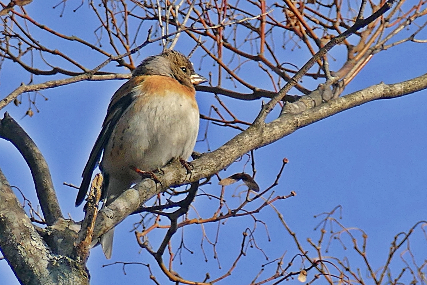 겨울철새 되새 홀로 휴식중....