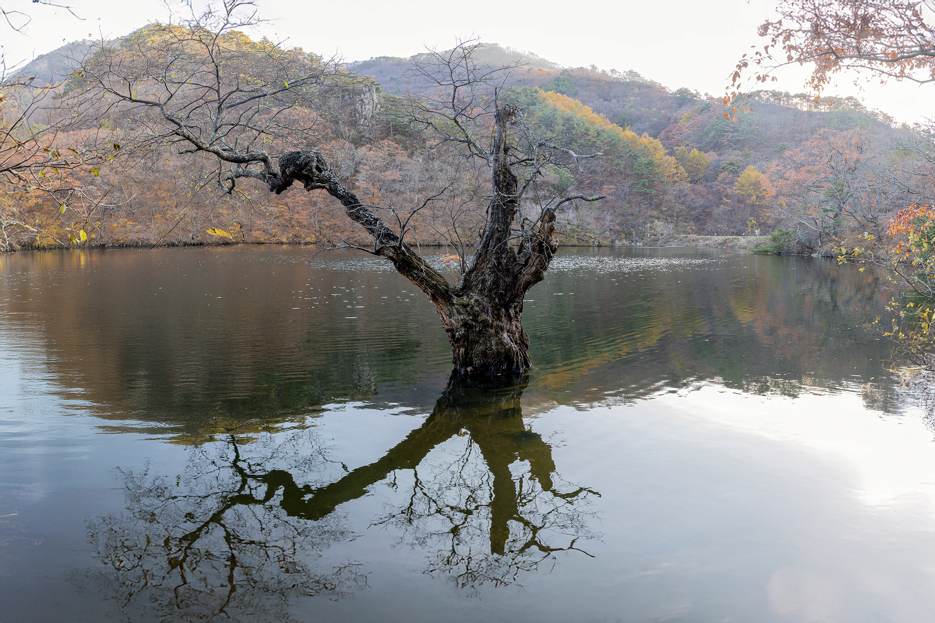 오후 늦게도착 물안개도 없고 바람이 불어 반영도 시원치않고 그냥 먼길 다녀 왔습니다