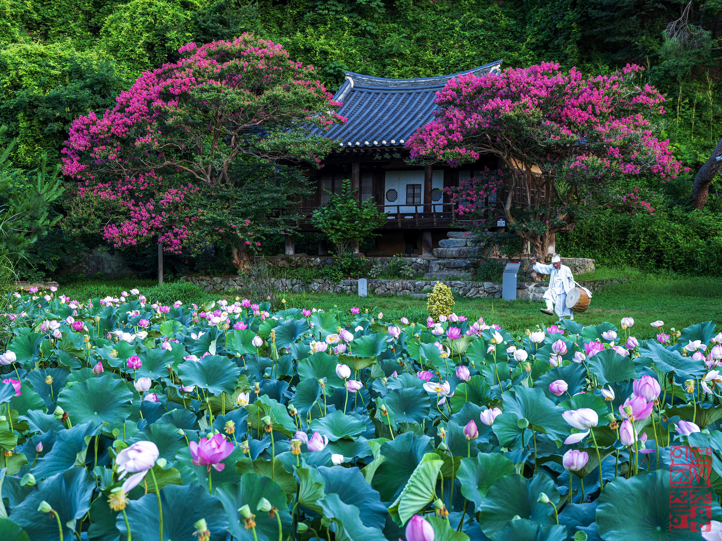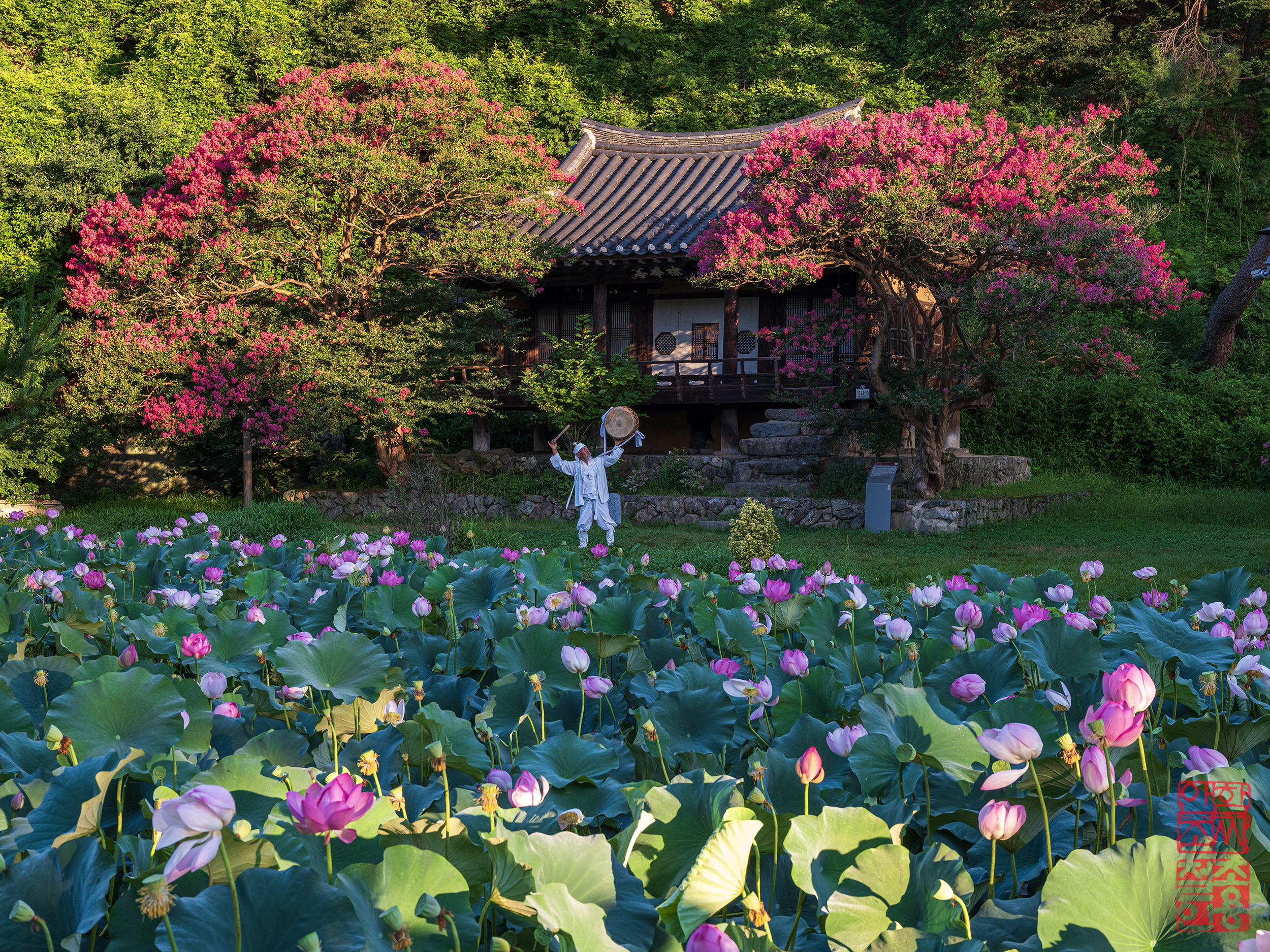 안동 채화정에 베룡나무와 연꽃,