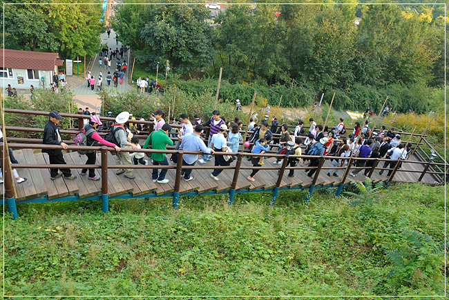 하늘공원으로 오르는 계단은 많은 분들의 방문으로 칸칸이