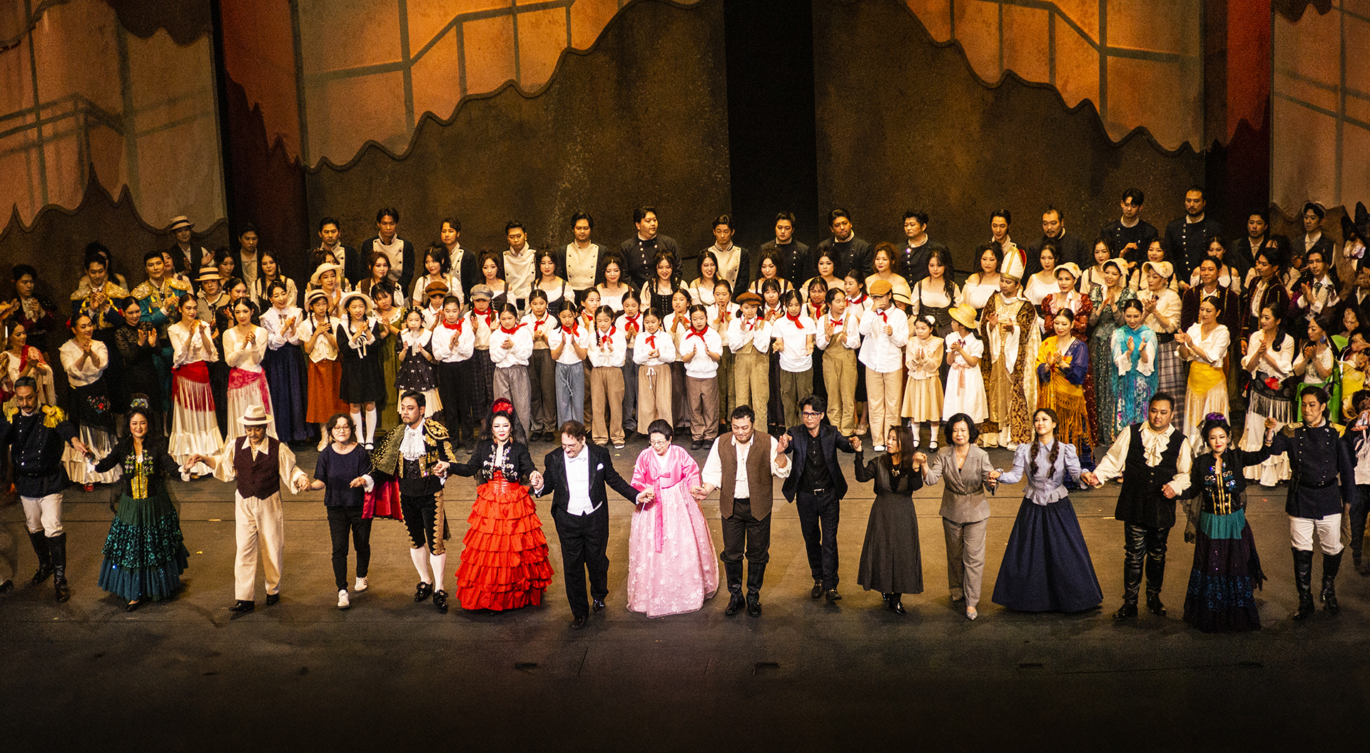오페라가 끝난다음 객석의 박수갈채를 받으며