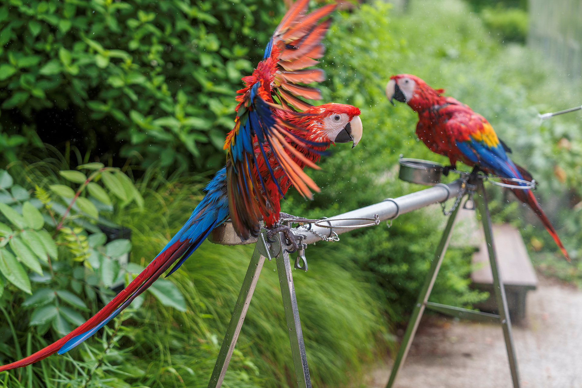 홍금강앵무의 할공 특훈 후 목욕하는 모습..