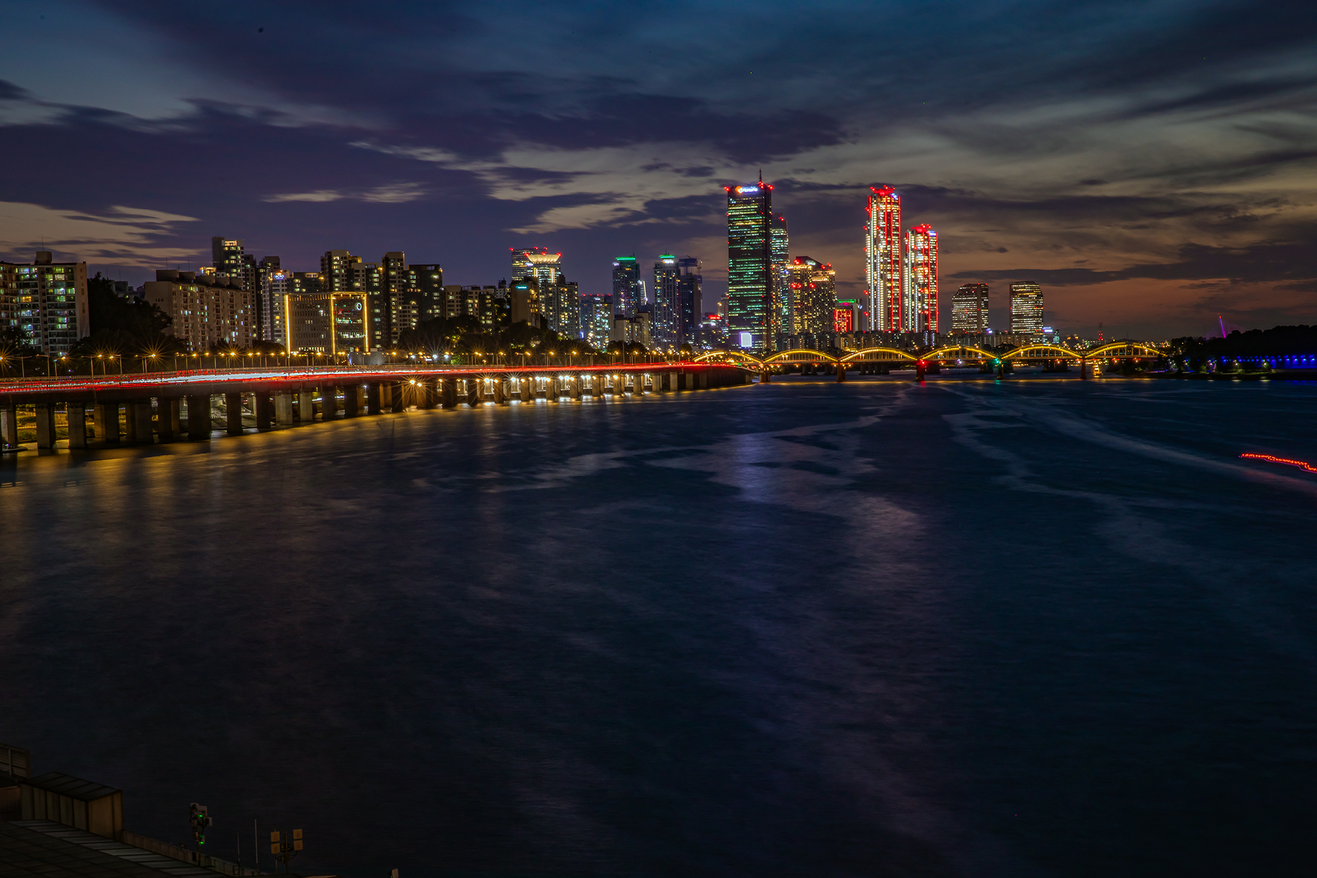 저 멀리 한강대교와 여의도 야경 한컷..
