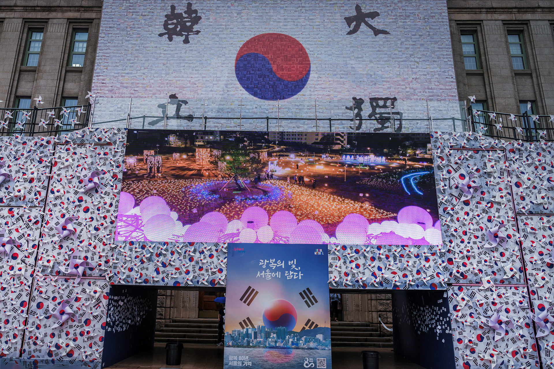 비오는날 오후 광복절 행사장에서 발견한 특별한 태극기을 담고 너무도 감격..