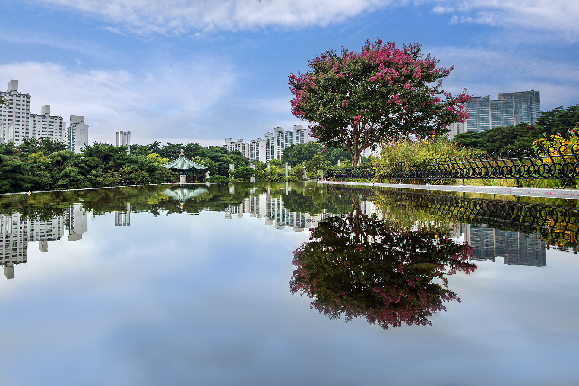 연못속에 비친 배롱나무의 반영을 담아 보았습니다~~