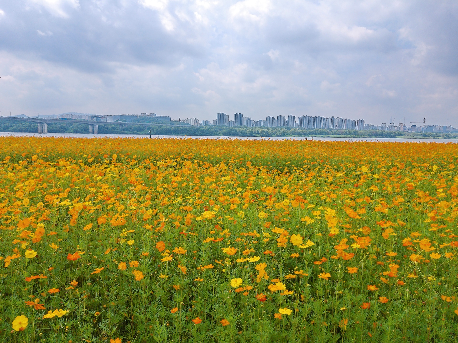 황하코스모스 만개입니다.