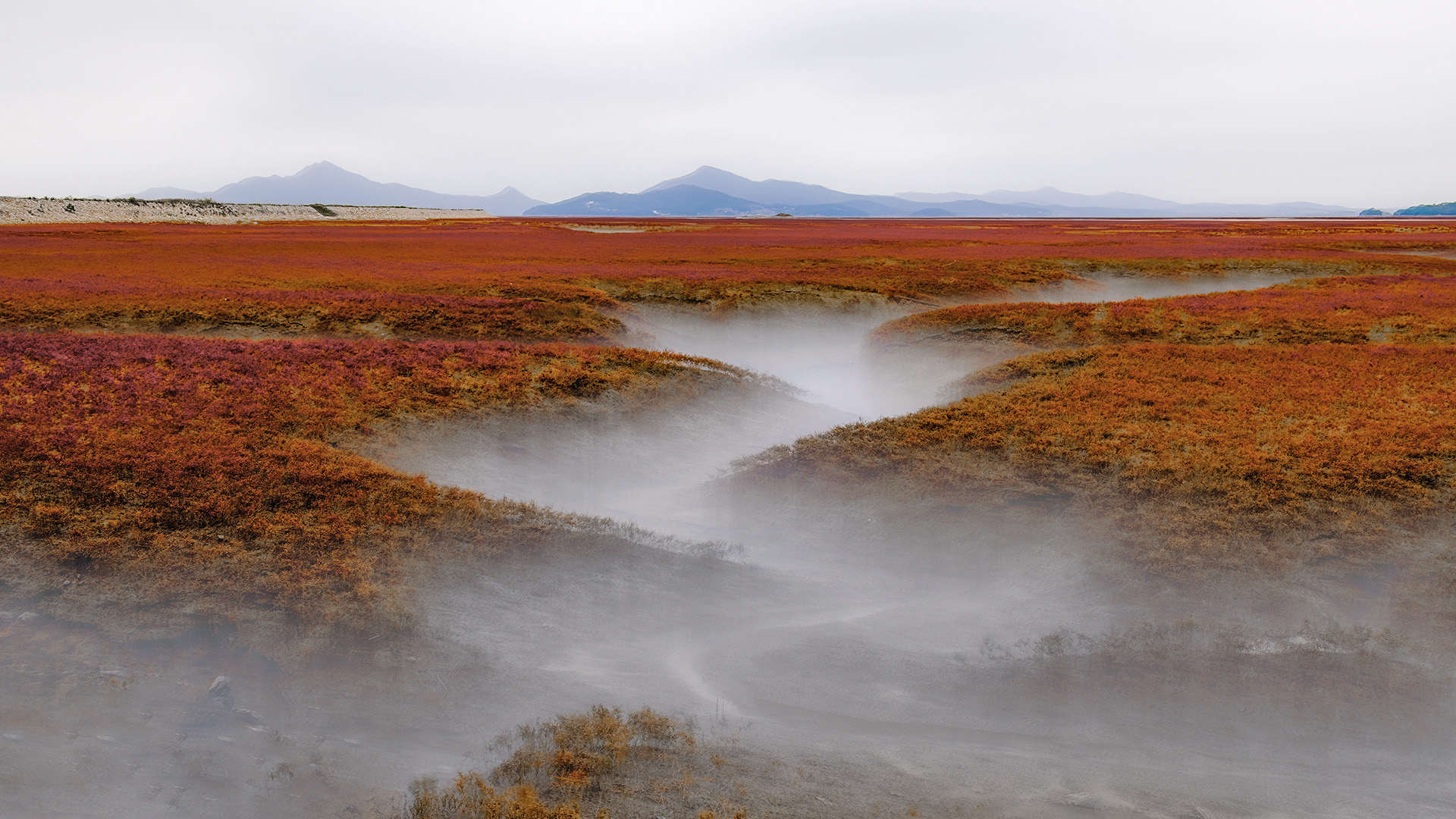칠면초는 아직 남아있는데 너무 넓은 갯고랑보다 폭이 좀 작은 것이 장노출 느낌이 좋다